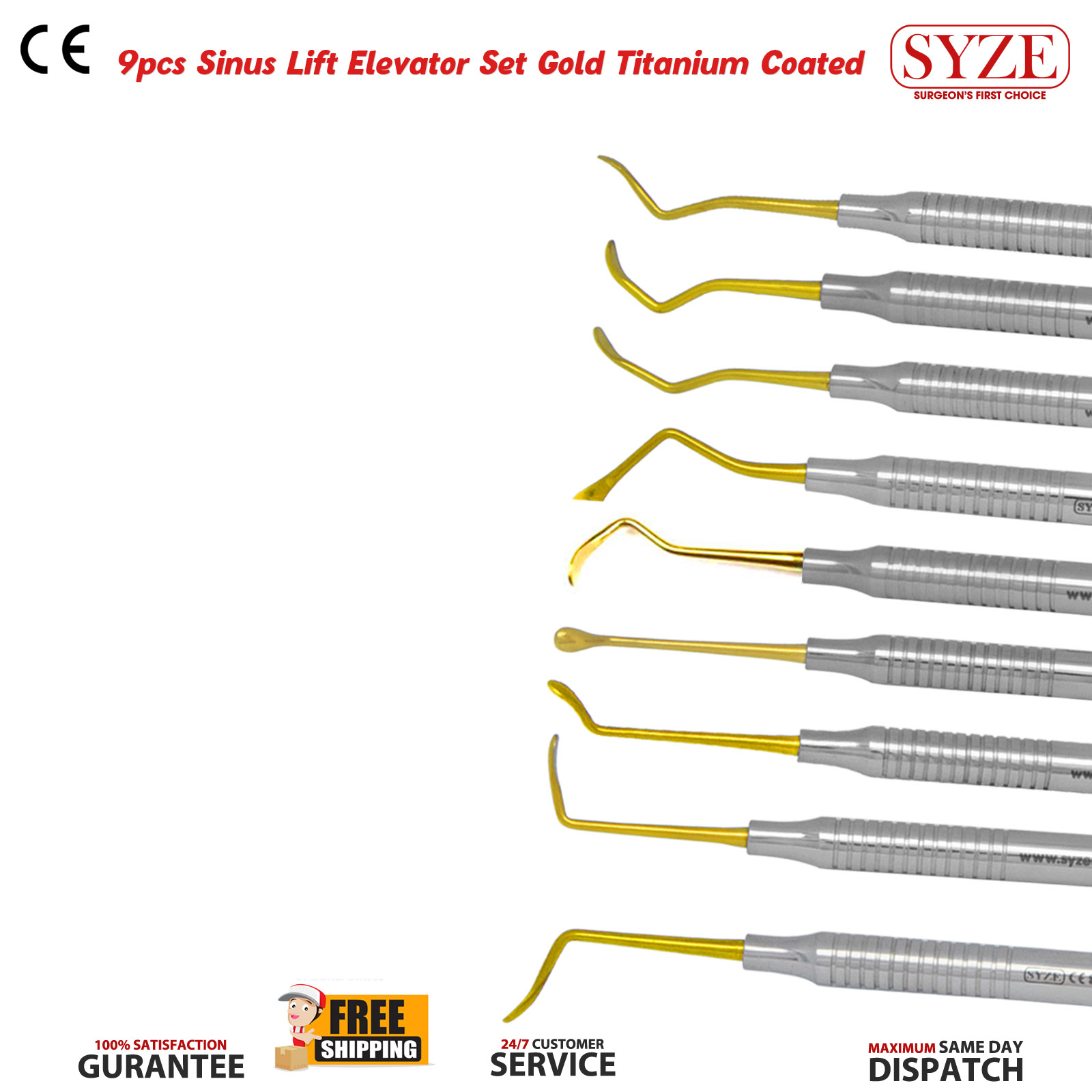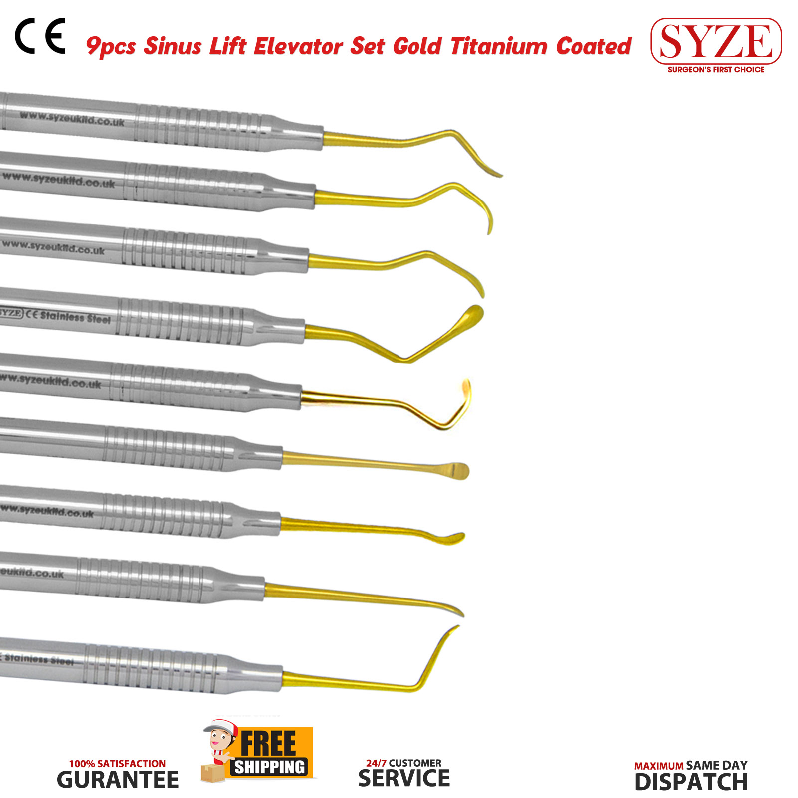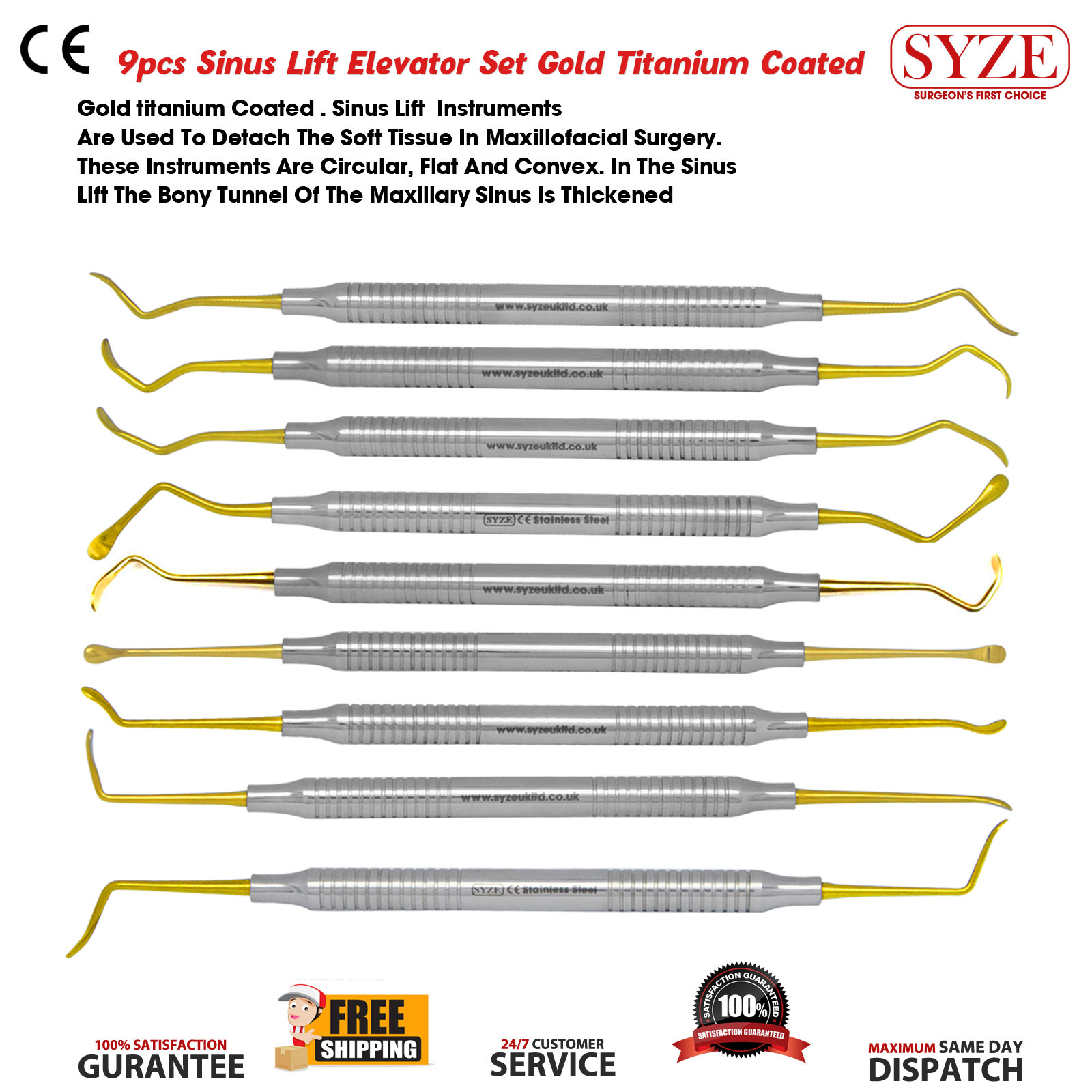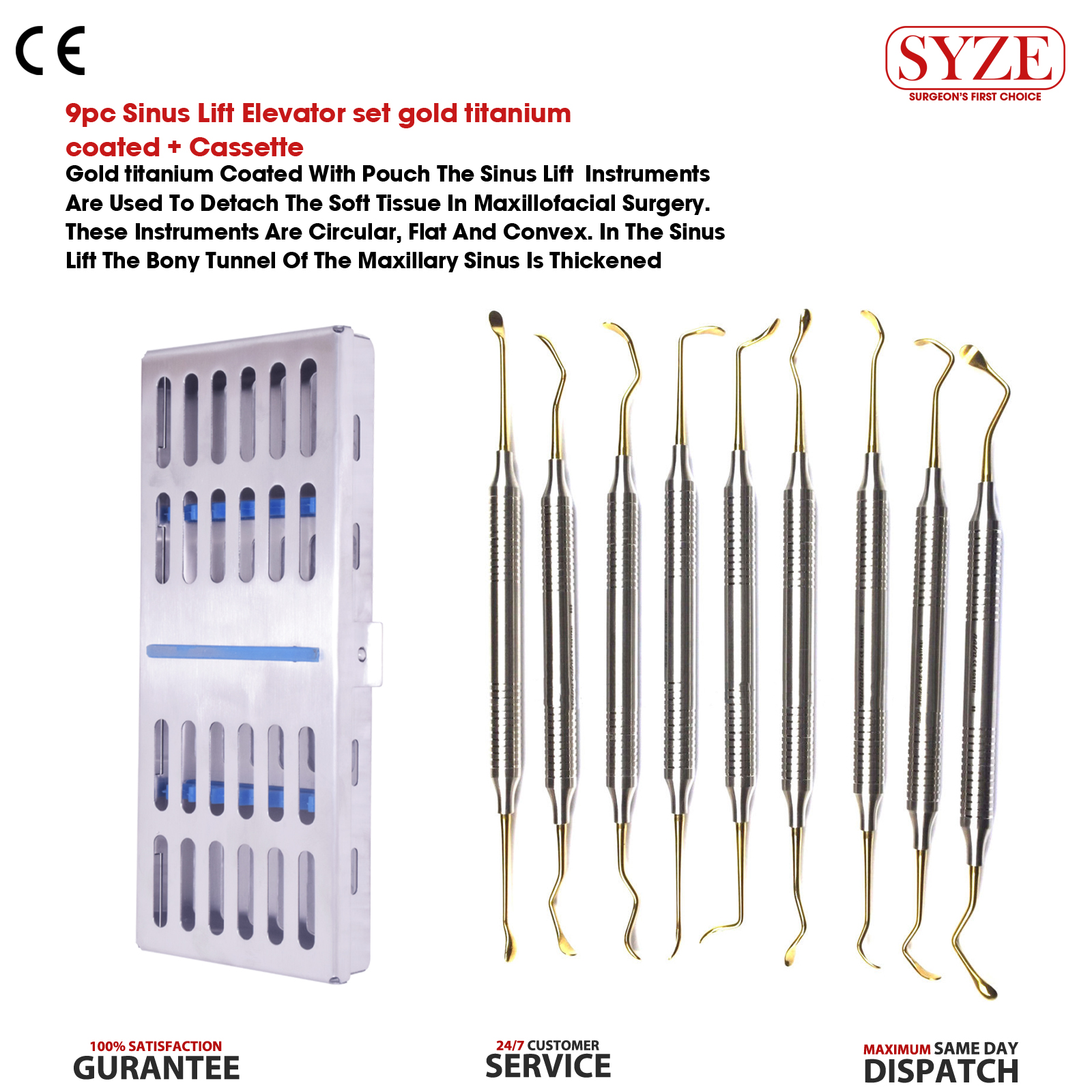 SINUS lift is an important process of dentistry in which the bone mass in you upper jaw is extended. Â As you know this process is important so you should choose the instruments related to this surgery very carefully. No need to worry SYZE UK LTD will do this for you. We are providing you the set of 9 PCs of Sinus lift instruments with gold coating. Just like the instruments sinus lift instruments set is made of best surgical graded stainless steel. We will provide you a sterilization cassette along with this set at 15% off. The discount is only for our registered customers so be it.