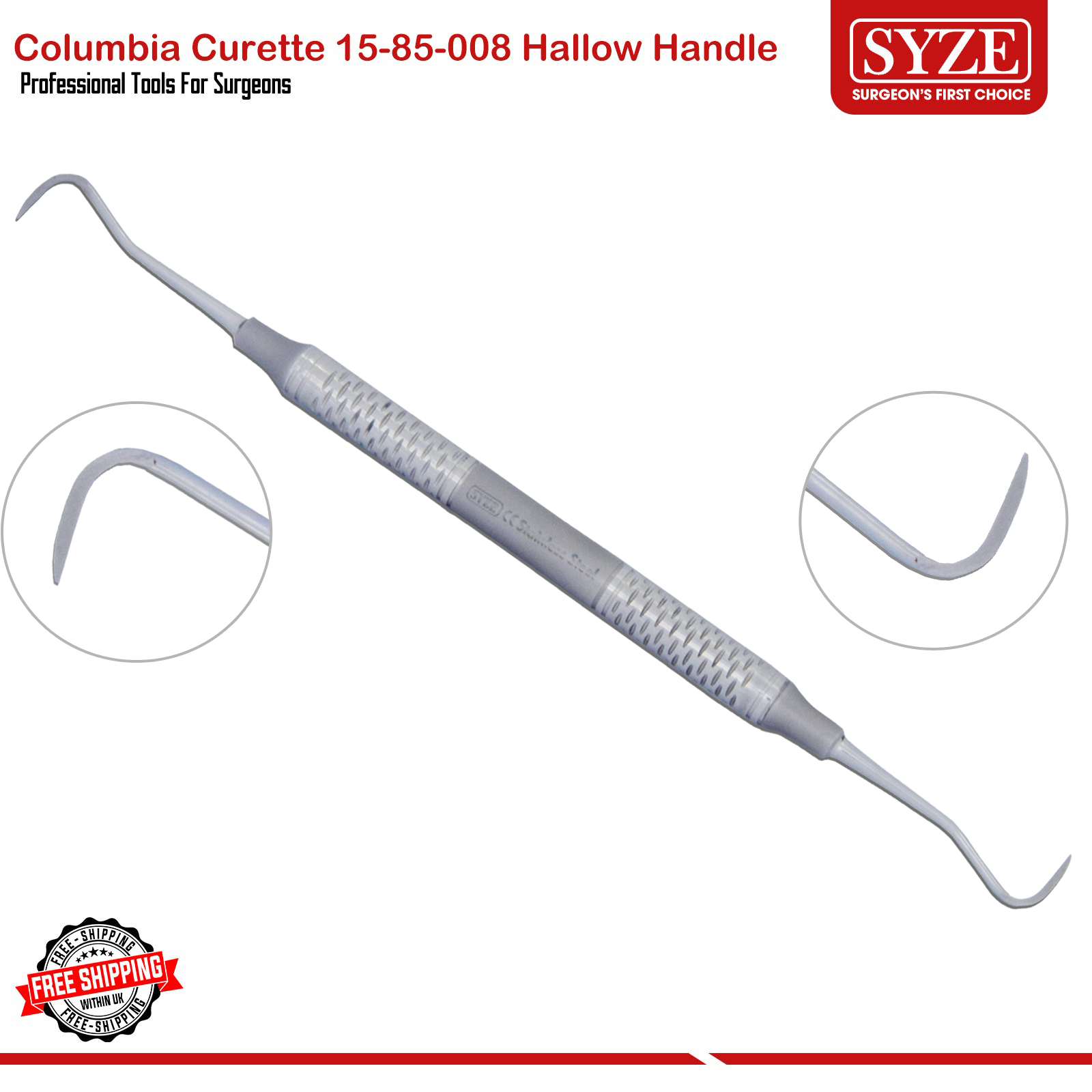 Columbia Curettes deliver high precision for removing subgingival calculus. Manufacturers craft these versatile dental instruments from premium stainless steel, ensuring they are durable, sharp, and easy to sterilize. The curettes feature a rounded tip and dual cutting edges for safe and effective cleaning below the gum line, making them ideal for periodontal treatments and routine dental maintenance. Their ergonomic handle design ensures comfort and control during extended procedures.