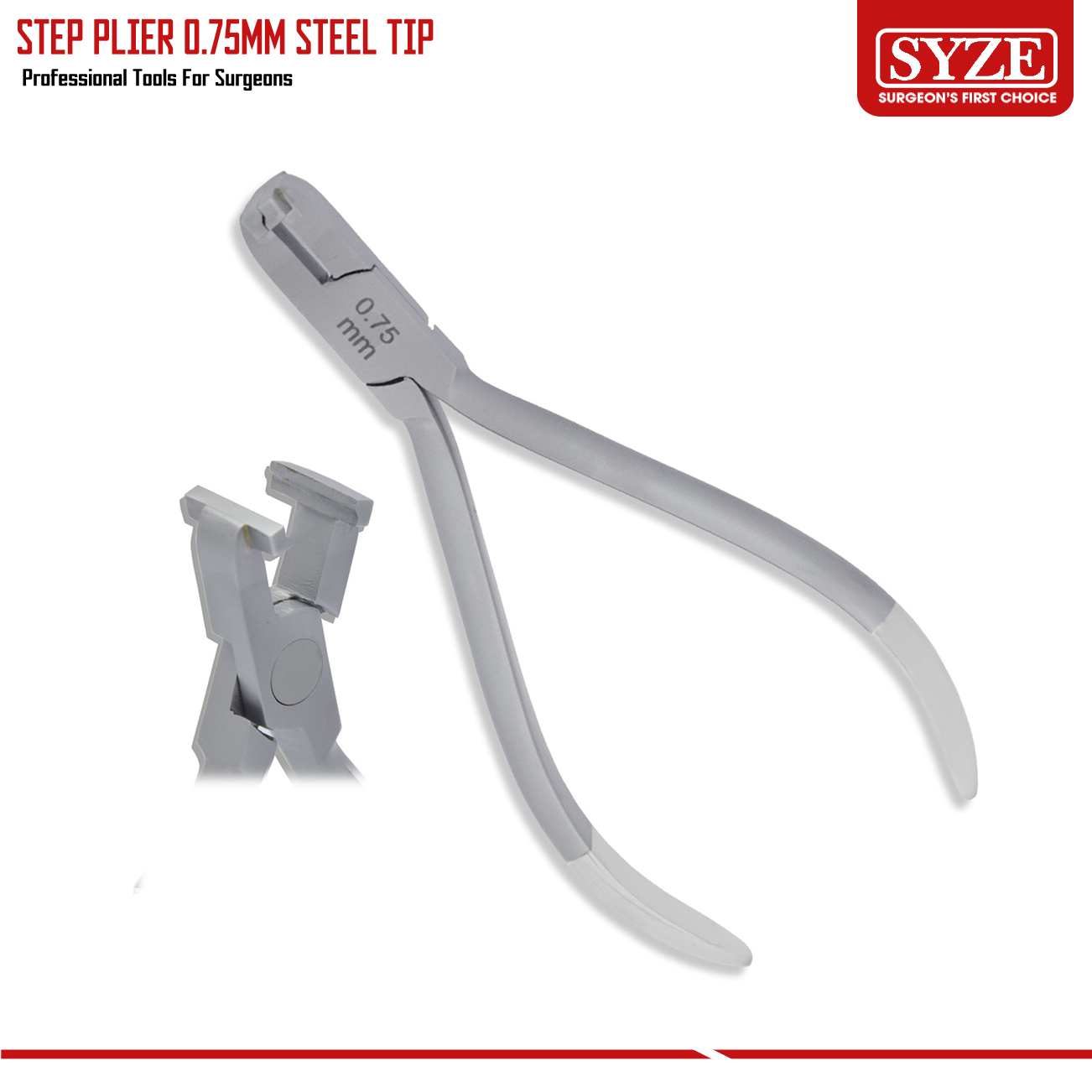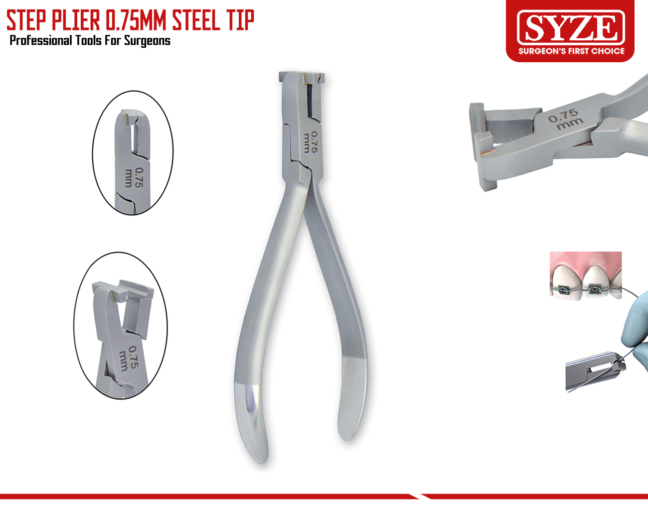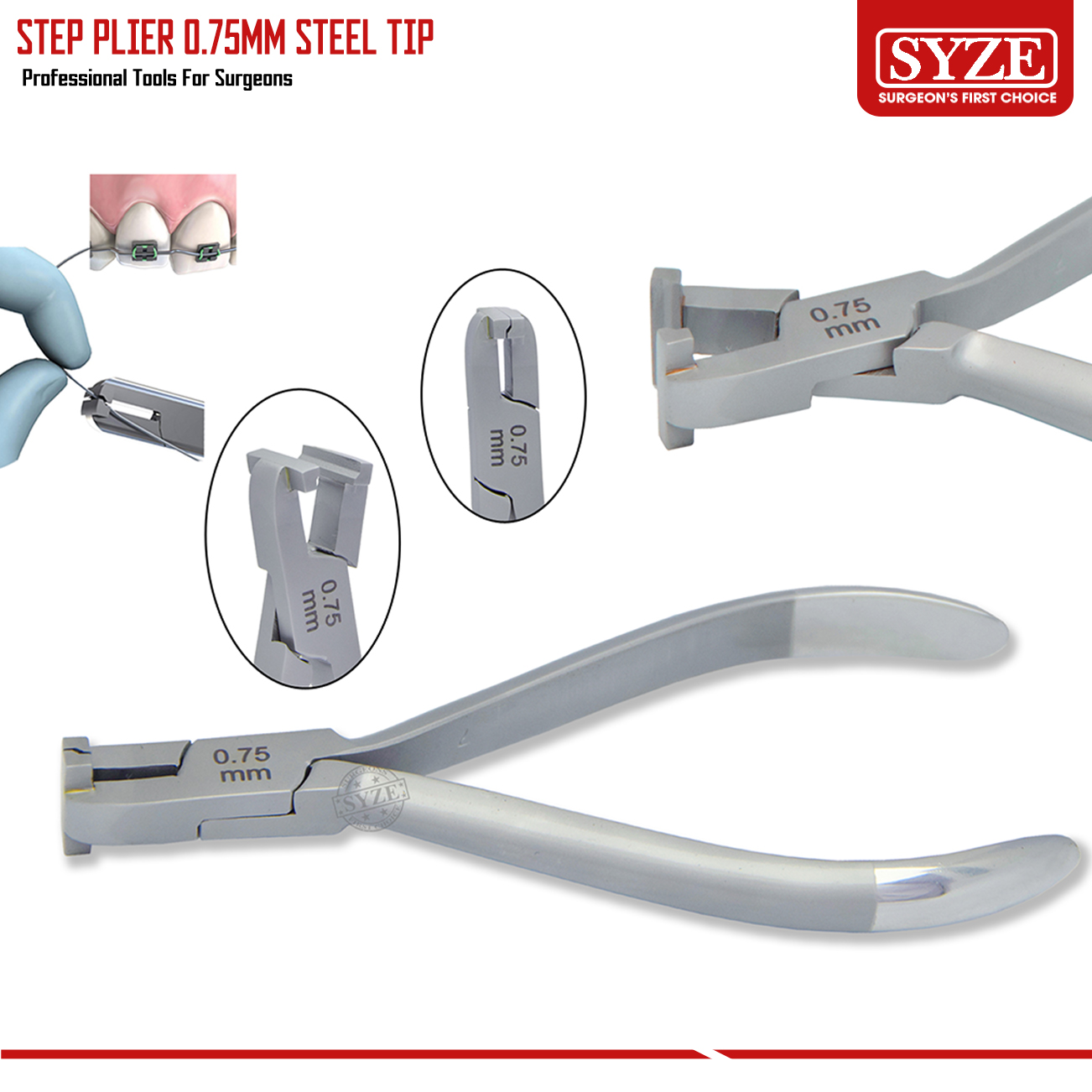 The Step Plier 0.75mm Steel Tip is a professional orthodontic instrument designed for precise step bends in archwires. With its fine 0.75mm tip, it allows orthodontists to make accurate adjustments for effective tooth movement. Crafted from high-quality stainless steel, this plier ensures strength, precision, and long-term durability, making it an essential tool for dental practices and labs.